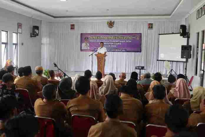 Berita Ciamis (Djavatoday.com),- Pemerintah Kabupaten Ciamis kembali menguatkan tata kelola pemerintahan desa melalui kegiatan Pembinaan dan Pengawasan Penyelenggaraan Pemerintahan Desa Tahun 2026. Kali ini, pembinaan digelar bagi seluruh desa se-Kecamatan Kawali dan berlangsung di Aula Kecamatan Kawali, Senin (26/1/2025).