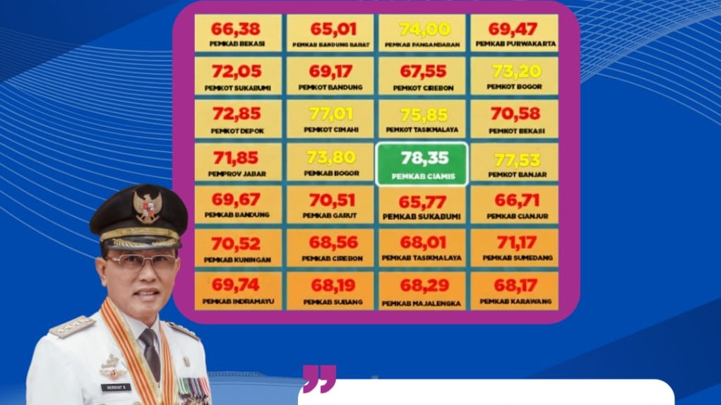 Hasil survei menunjukkan Pemkab Ciamis meraih skor 78,35, melampaui rata-rata nasional dan menempatkan daerah ini sebagai yang terbaik di Jawa Barat untuk tahun 2025. Capaian tersebut sekaligus menggeser posisi Ciamis dari peringkat ketiga pada tahun sebelumnya.