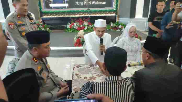 Prosesi pernikahan diawali sambutan Kapolres Ciamis AKBP Hidayatullah, yang sekaligus menjadi saksi dalam akad tersebut. Petugas dari Kantor Urusan Agama (KUA) Kecamatan Kawali memimpin jalannya ijab kabul yang berlangsung khidmat dan penuh haru.