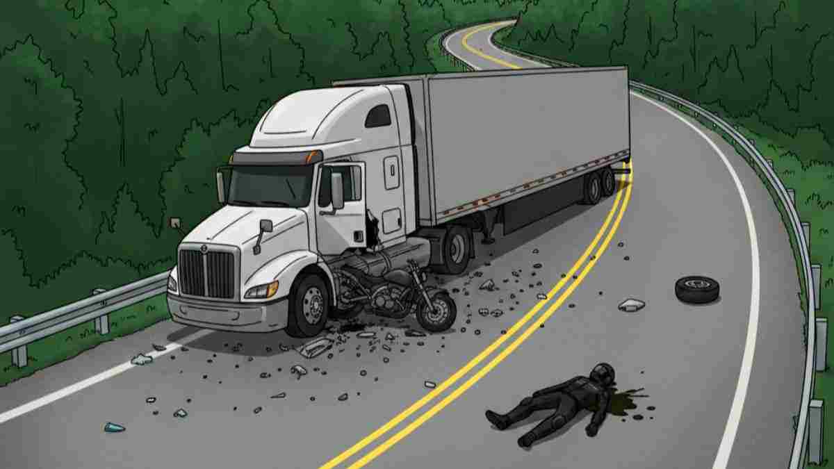 Menurutnya, kecelakaan terjadi saat sepeda motor melintasi jalan menikung ke kanan. Pengendara motor mengambil jalur kanan hingga bertabrakan dengan truk yang datang dari arah berlawanan.