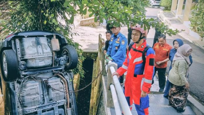 “Kami mendapat telepon dari pihak kampus, ada mobil yang terjun dari parkiran. Petugas langsung menuju lokasi untuk membantu mengevakuasi,” ujar Budi.