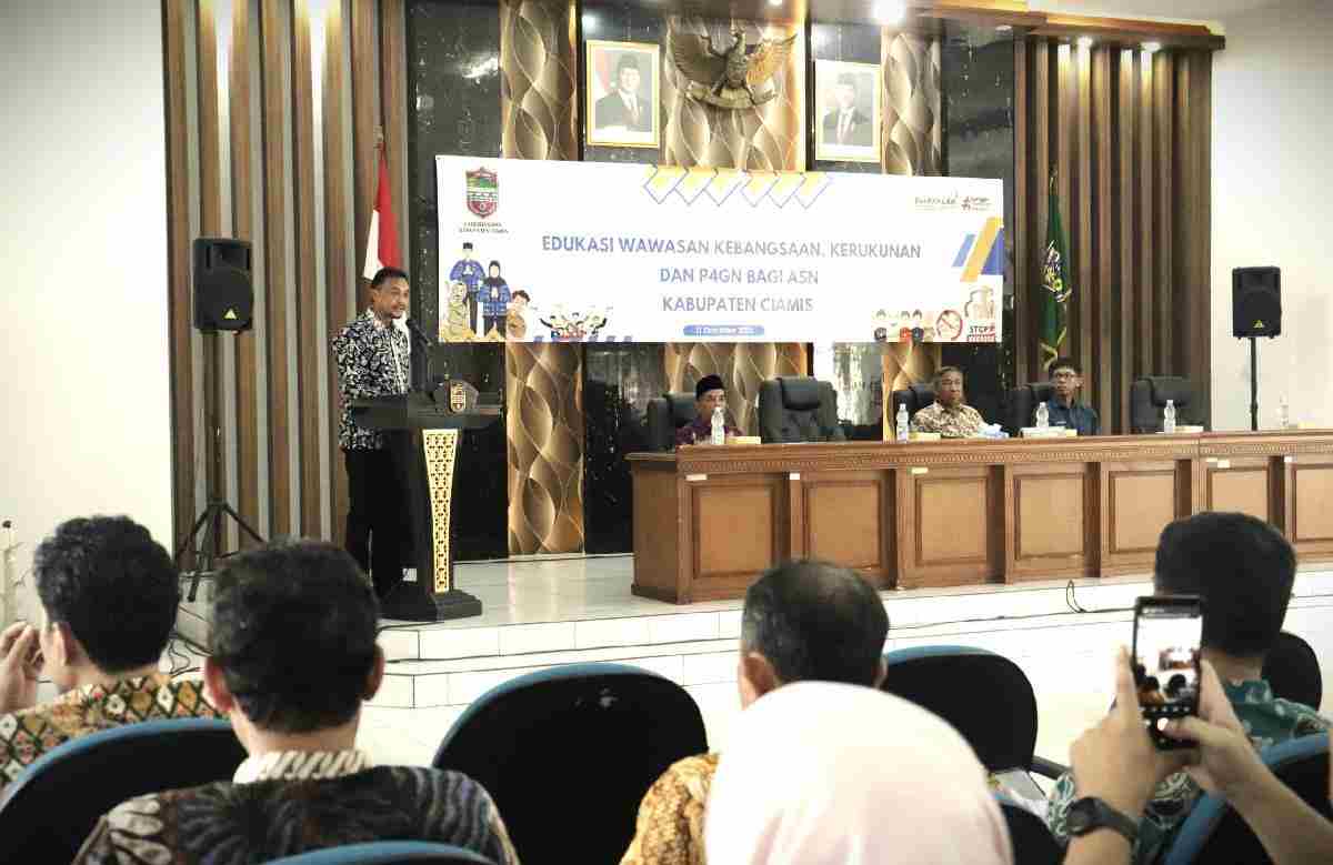 Berita Ciamis (Djavatoday.com),- Pemerintah Kabupaten Ciamis kembali menekankan pentingnya memperkuat karakter aparatur sipil negara melalui kegiatan Edukasi Wawasan Kebangsaan, Kerukunan, dan P4GN (Pencegahan dan Pemberantasan Penyalahgunaan dan Peredaran Gelap Narkotika). Kegiatan yang digelar di Aula PKK Ciamis pada Kamis (11/12/2025) itu diikuti ratusan ASN dari berbagai perangkat daerah.