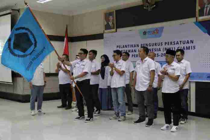 Berita Ciamis (Djavatoday.com),- Kepengurusan Persatuan Wartawan Indonesia (PWI) Kabupaten Ciamis periode 2025-2028 resmi dilantik di Aula BKPSDM Ciamis, Sabtu (25/4/2026). Prosesi pelantikan dipimpin langsung Plt Ketua PWI Jawa Barat, Ahmad Sukri, disaksikan unsur pemerintah daerah dan para jurnalis.