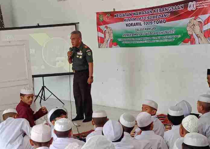 Berita Sumedang (Djavatoday.com),- Sebanyak 114 siswa-siswi Pondok Pesantren Mathlaunnajah, Desa Ujungjaya, Kecamatan Ujungjaya, mengikuti kegiatan pembinaan Wawasan Kebangsaan yang digelar Koramil 1009/Tomo, Senin (11/8/2025). Kegiatan ini menjadi bagian dari peringatan HUT ke-80 Republik Indonesia.