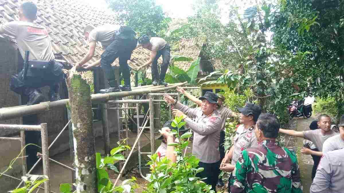 Kapolres Tasikmalaya AKBP Haris Dinzah memimpin langsung proses perobohan rumah milik Nanu Hasbunah (74), seorang lansia penyandang disabilitas. Dengan semangat gotong royong, AKBP Haris turut menurunkan genting rumah bersama personel dan warga sekitar.