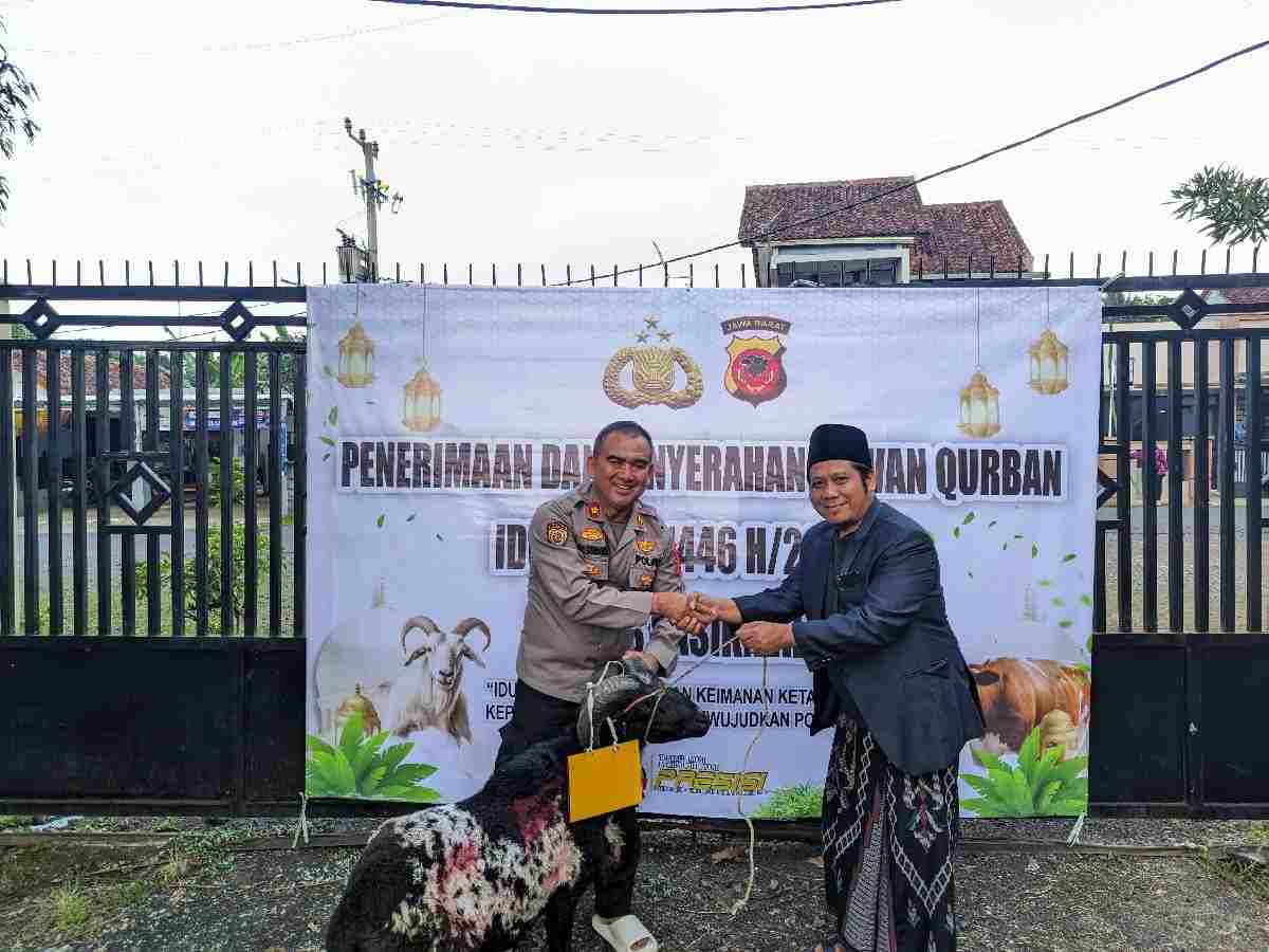 Penyaluran kurban melibatkan 11 ekor sapi, 15 ekor domba, dan 2 ekor kambing, termasuk satu ekor sapi bantuan langsung dari Kapolda Jawa Barat.